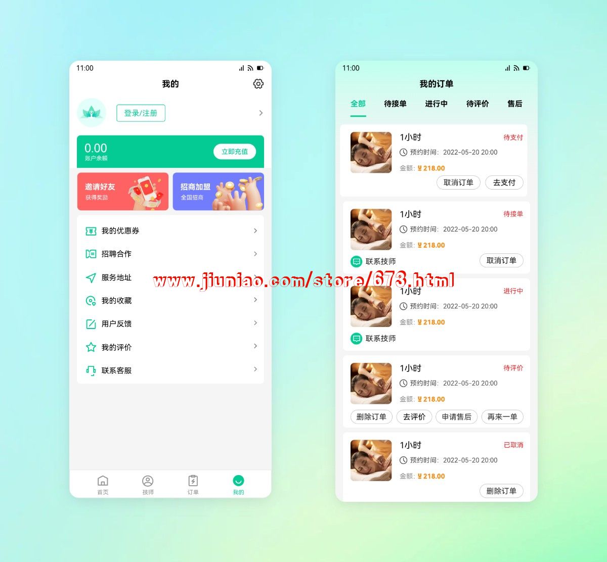 本软件(上门按 摩,到店按 摩服务系统)包含: