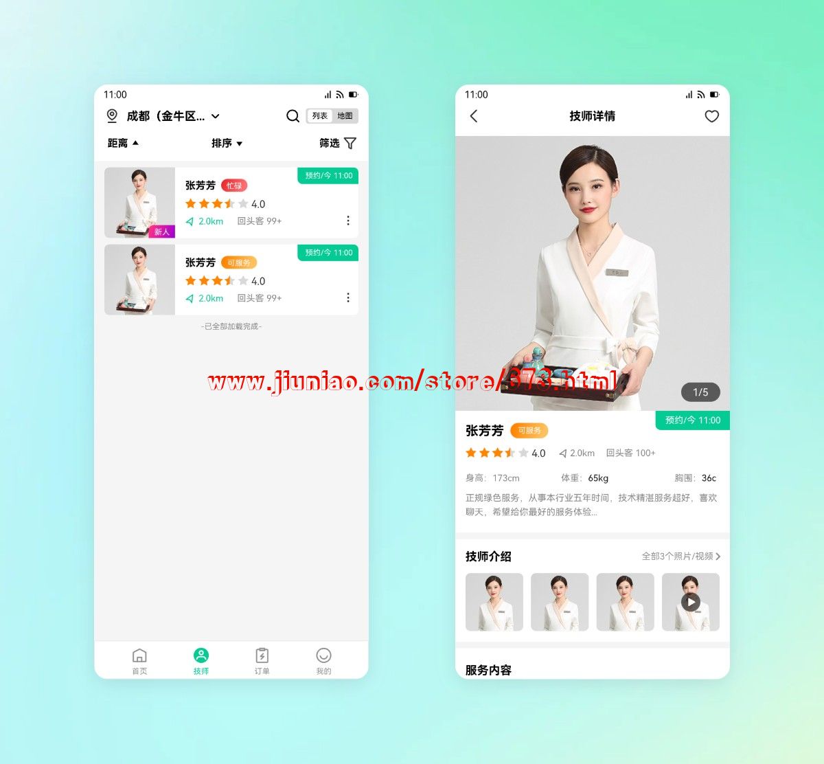 1,按 摩技师入驻系统(配合有按 摩师独立的管理界面)