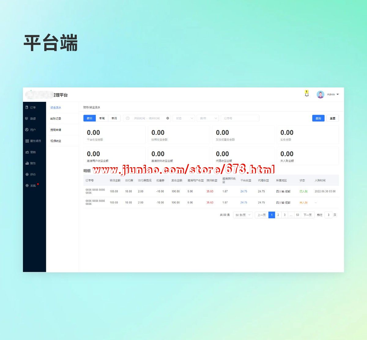 2,订单系统(所有服务订单,都有详细的列表记录)