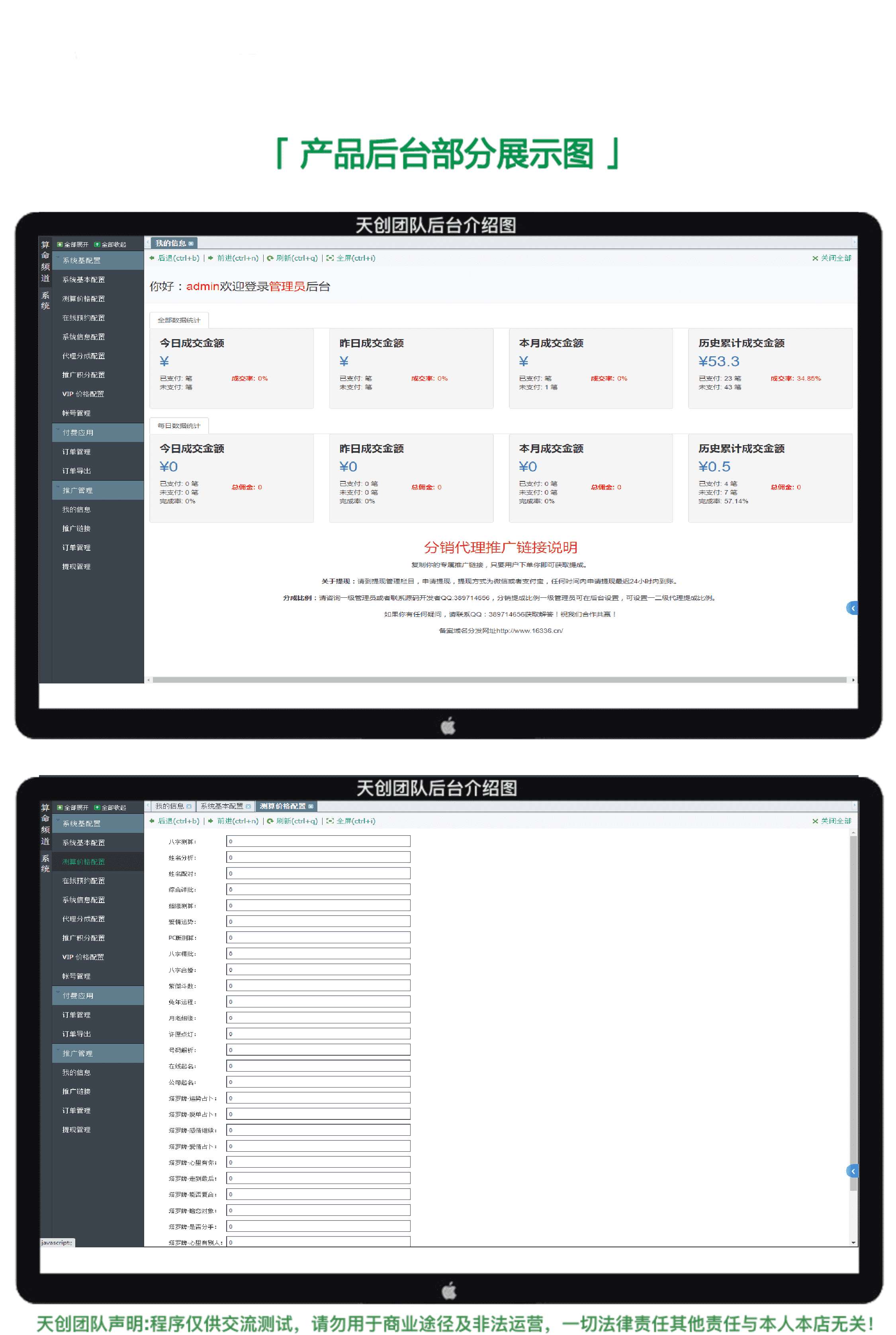 八字精批、事业财运、姓名分析、宝宝起名、公司测名、姓名配对、综合详批、姻缘测算、牛年感情、PC版测算、八字合婚、紫微斗数、鼠年运程、月老姻缘、许愿祈福、号码解析、塔罗运势、脱单占卜、感情继续、脱单占卜、塔罗爱情、心理有你、能否复合、暗恋对象、是否分手、爱着别人、大师服务(包含多项功能)共计30余项功能,全网功能全,完善的版本。