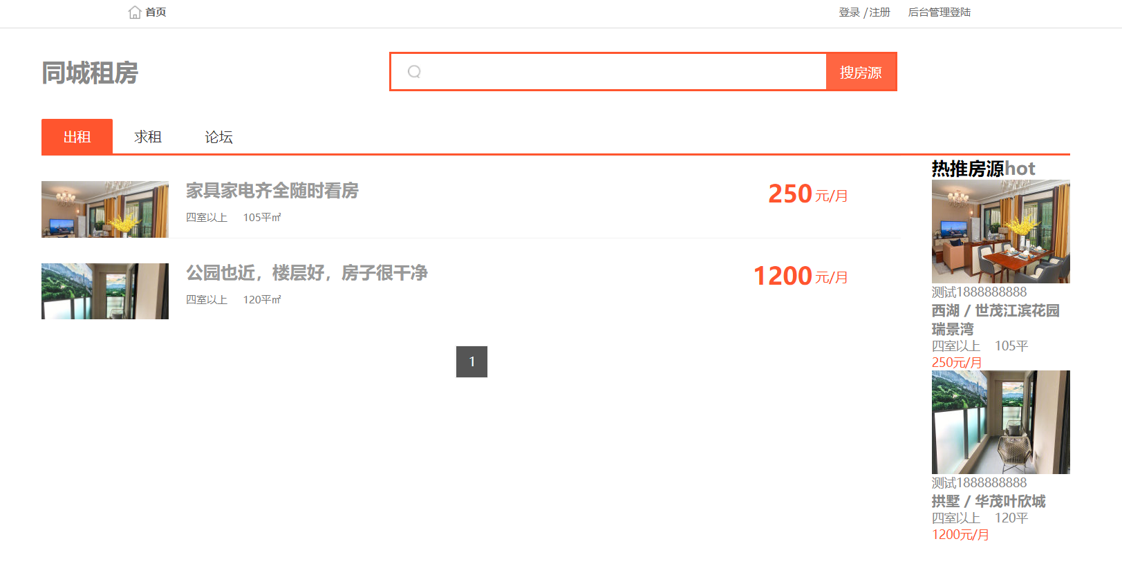 登录注册 浏览租房信息 求租信息 论坛
