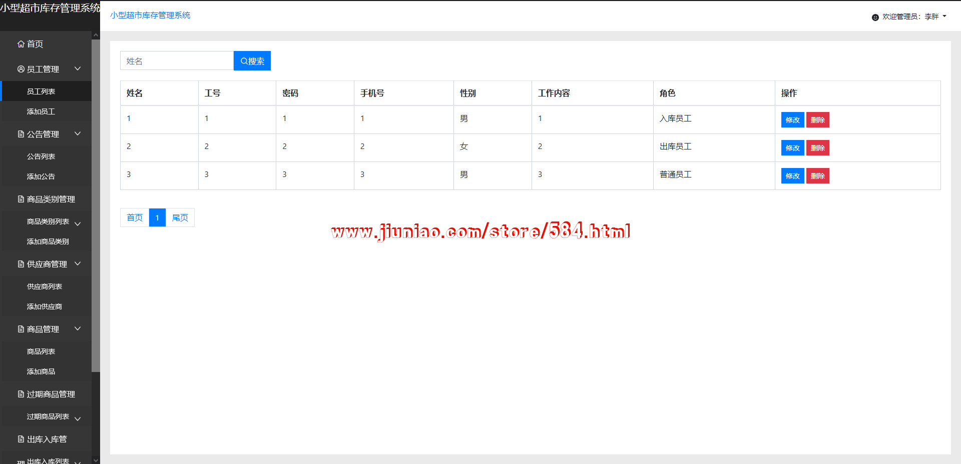 用户类型:4角色(管理员,入库员工,出库员工,普通员工)