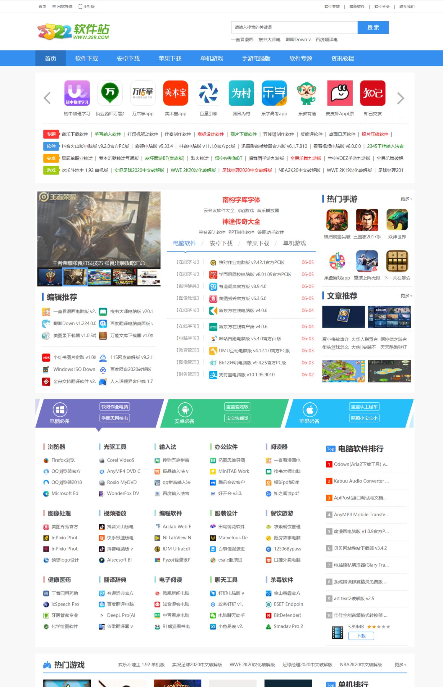 帝国cms7.5仿《32r》软件下载站模板整站源码PC+wap同步生成带火
