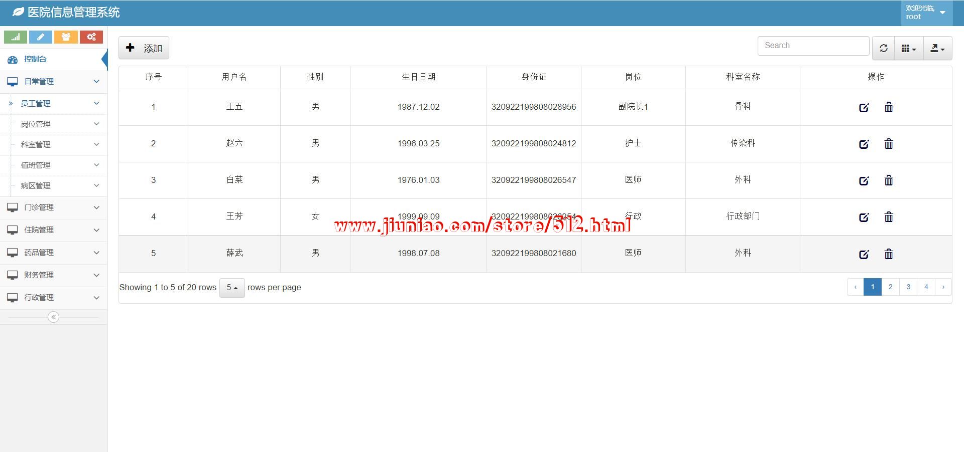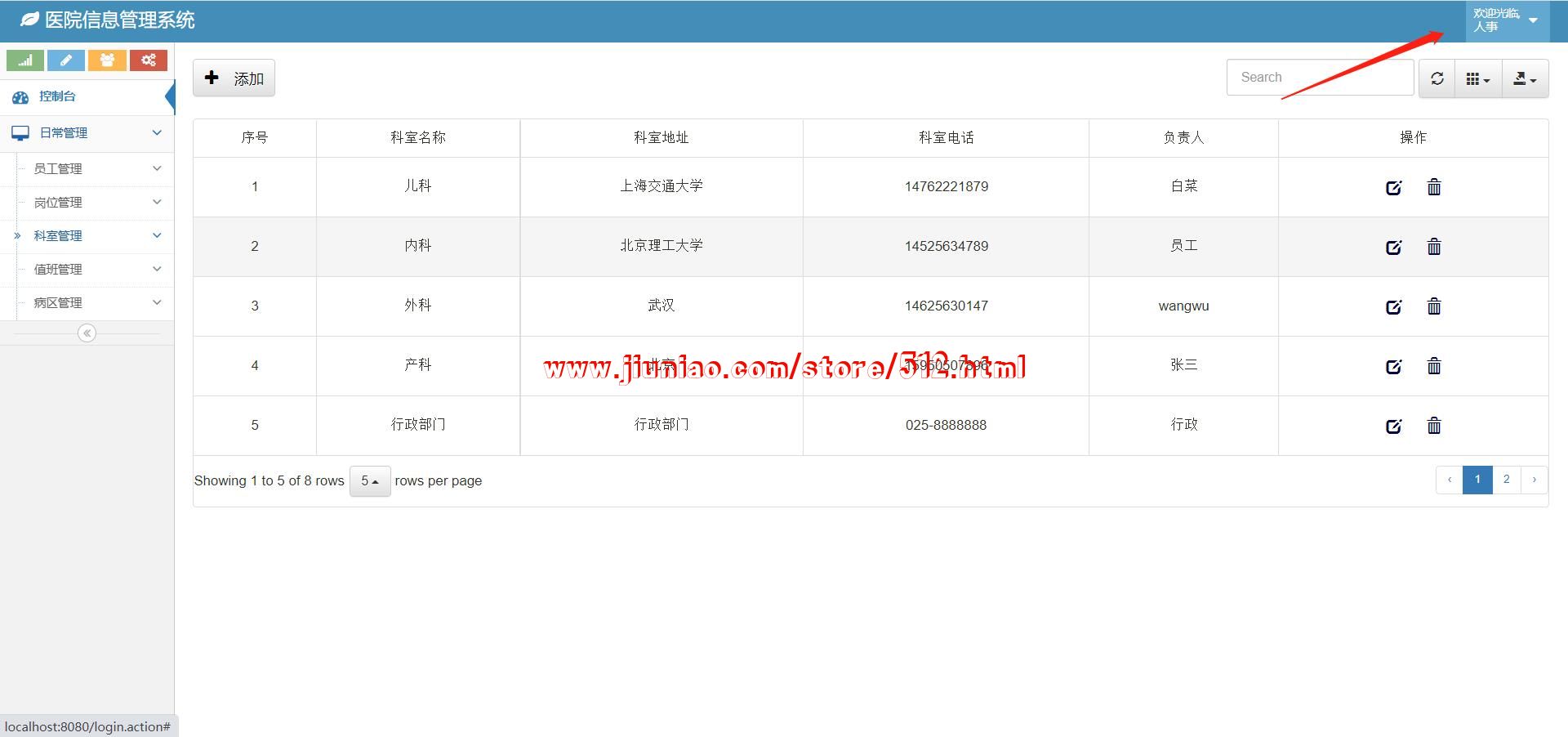 科室管理(添加科室、删除科室、修改科室、查询指定科室、导出数据)