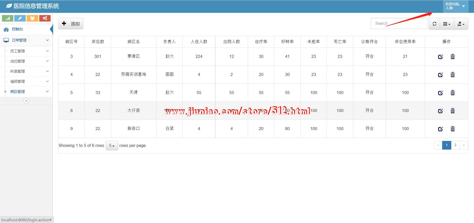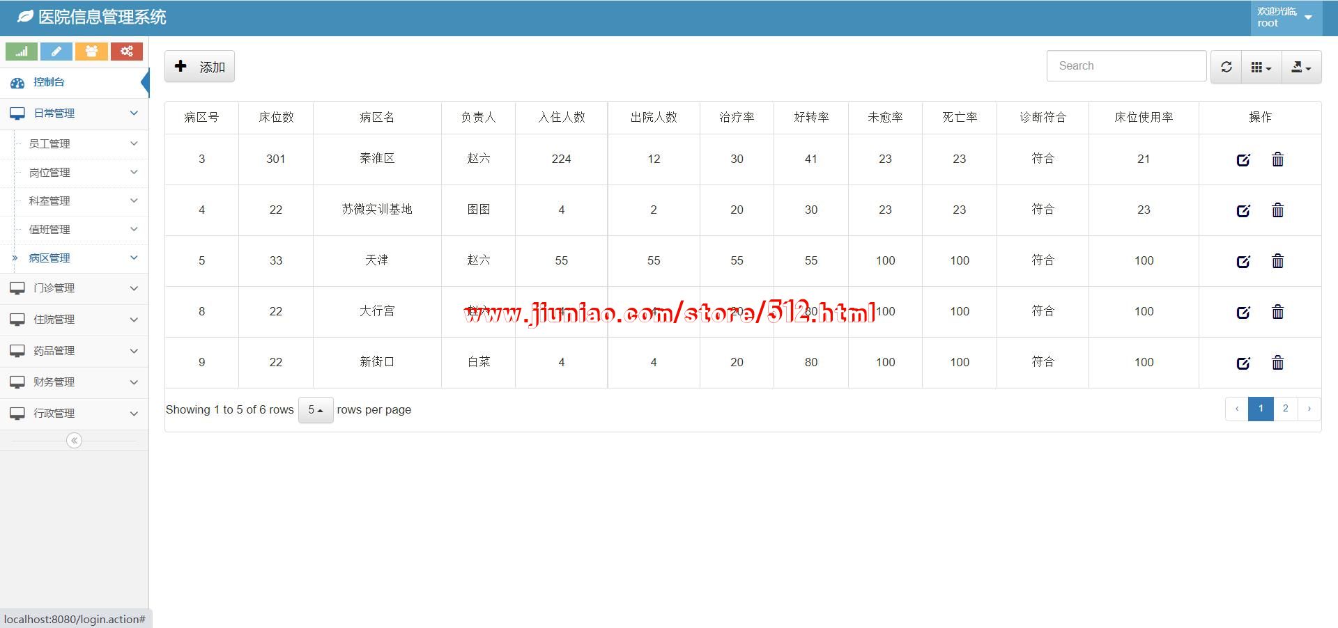 病区管理(添加病区、修改病区、删除病区、查询指定病区、导出数据)