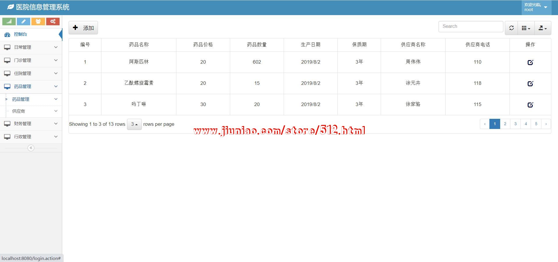 药品管理(添加药品、修改药品、查询指定药品、导出数据)