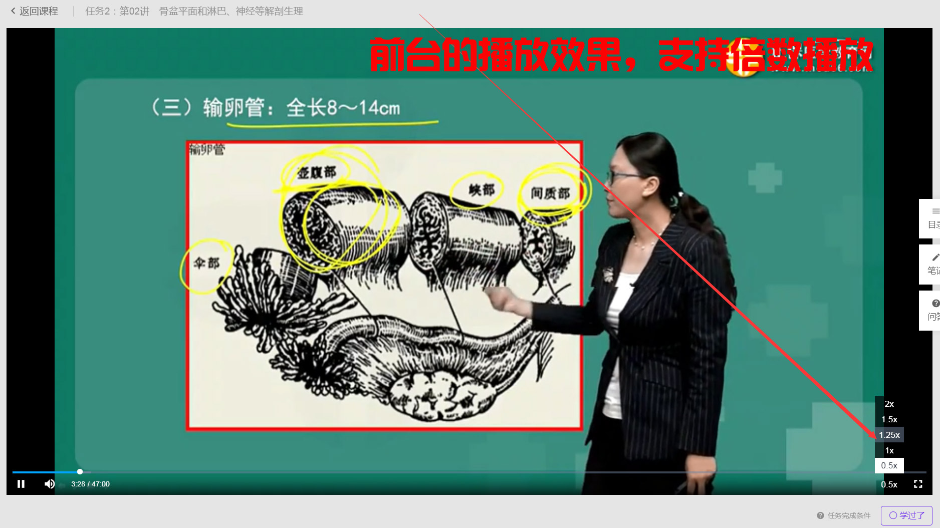 步骤6:倍速播放 在浏览器支持的情况下播放器默认开启倍速播放功能。