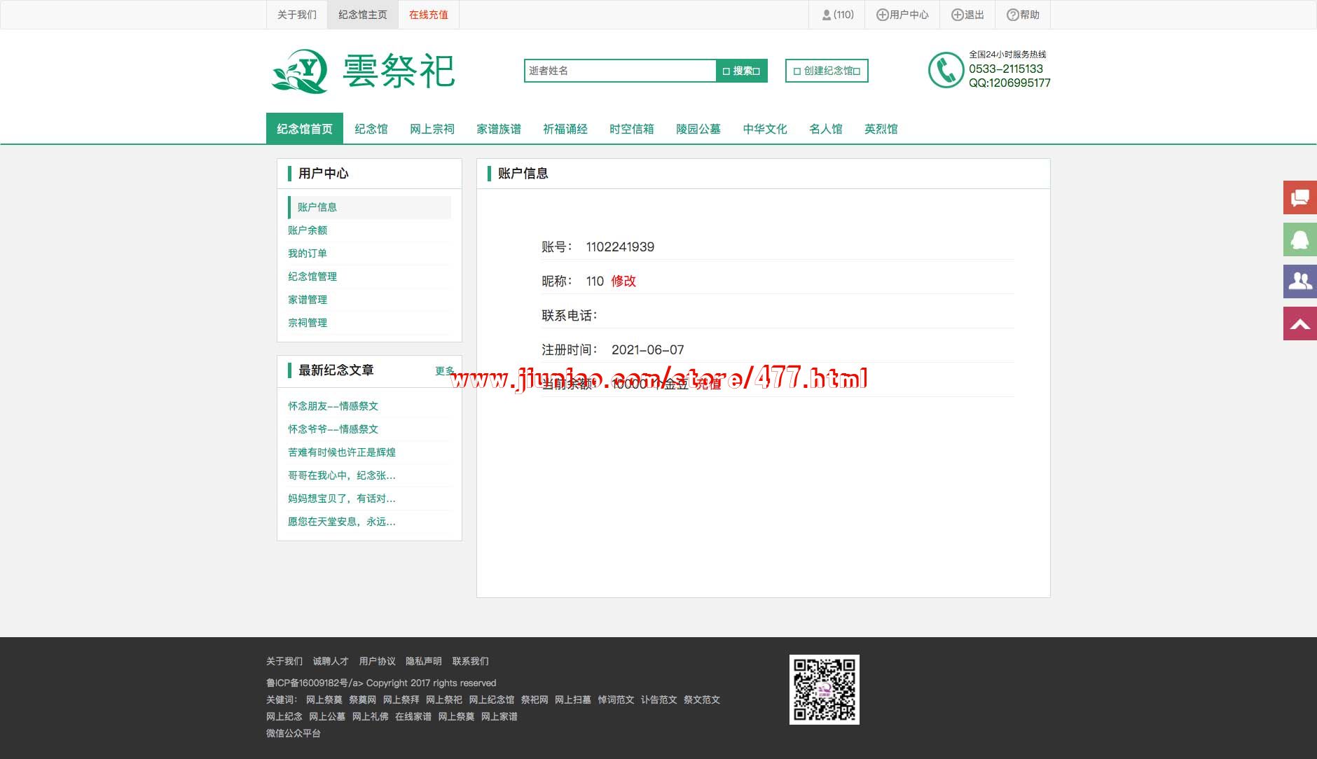 网上纪念/网上纪念馆/网上祭英烈/网络祭祀/网上祭奠/整站源码+安装文档教程