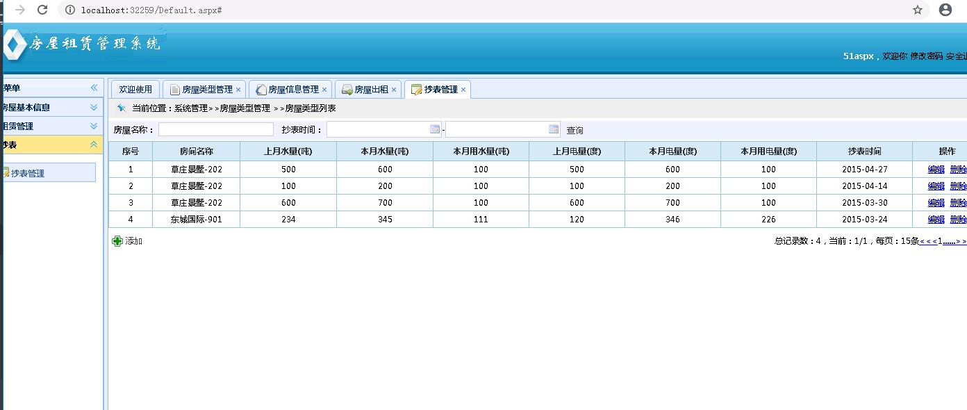 3、抄表:主要包括房屋的电费、水费、网费、煤气费等的管理记录