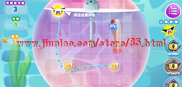 游戏介绍:触屏滑动小贼,和金币连成一条线,吃掉金币过关游戏。