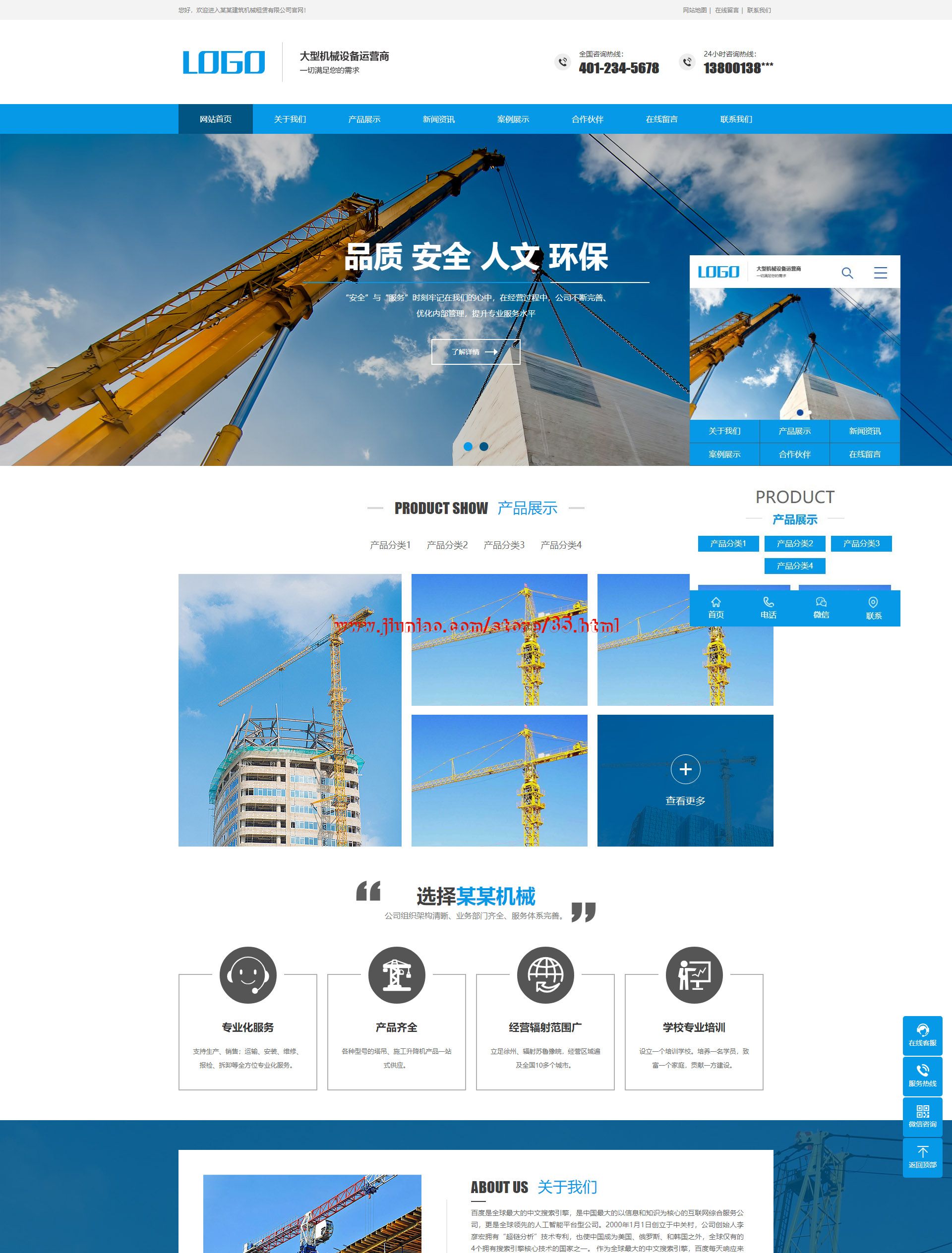 pbootcms蓝色大气建筑机械设备制造租赁企业网站源码 带手机版