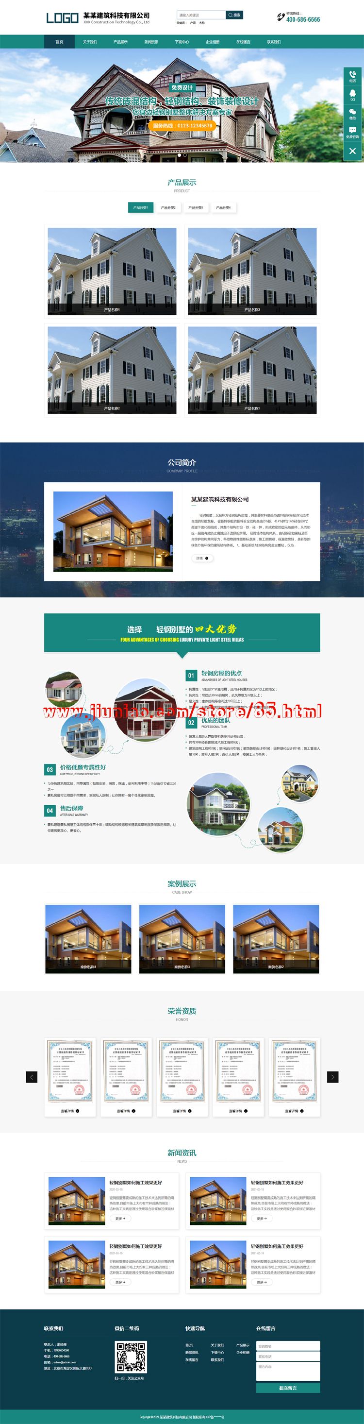 PbootCMS营销型轻钢别墅房屋建筑设计施工企业网站源码 带手机版