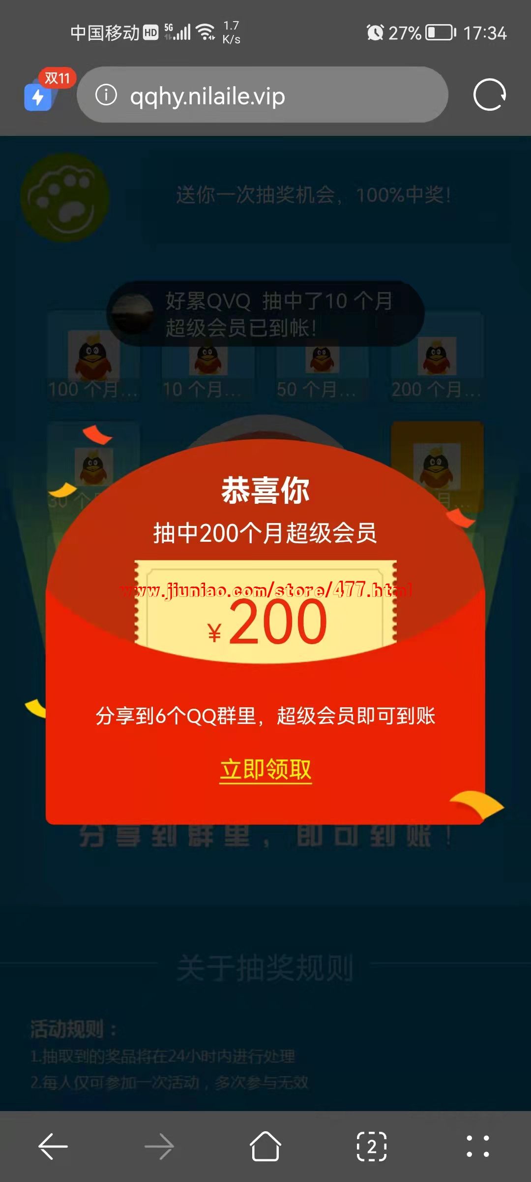 抽奖系统源码,客户抽中奖品后,提示需要分享到6个群后才能领取, 分享群后直接跳到自己想让加的群,