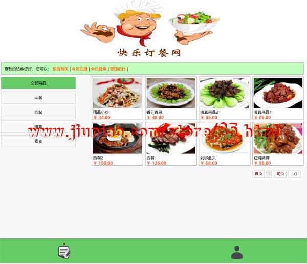 为增强用户粘度,订餐系统提供一个简洁高效的界面供访客注册成为会员,会员登录后,可以查看所有的菜品并添加到购物车,为方便会员的订购,购物车里支持多种商品,并支持在购物车内调整商品的数量或删除商品;