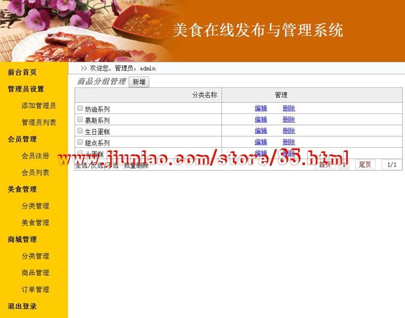 美食在线订购网包含:会员、管理员、文章、商城等4大模块,采用原生php+mysql开发,面向过程,无框架,代码简单易懂;系统设计了8张数据库表,表之间有联系,字段设计合理;系统功能全面,包含了增删改查、批量操作、注册登录等基本元素,其中作为商城系统,商品分类、商品、购物车、订单等一应俱全,完全可以作为php+mysql方向的设计范例程序使用。