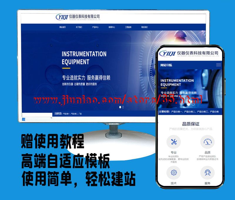 帝国cms蓝色响应式英文外贸仪器仪表科技公司网站源码 自适应手机端