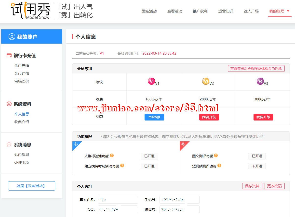 6、提现是,模特申请提现,人工转账到用户个人收款二维码。