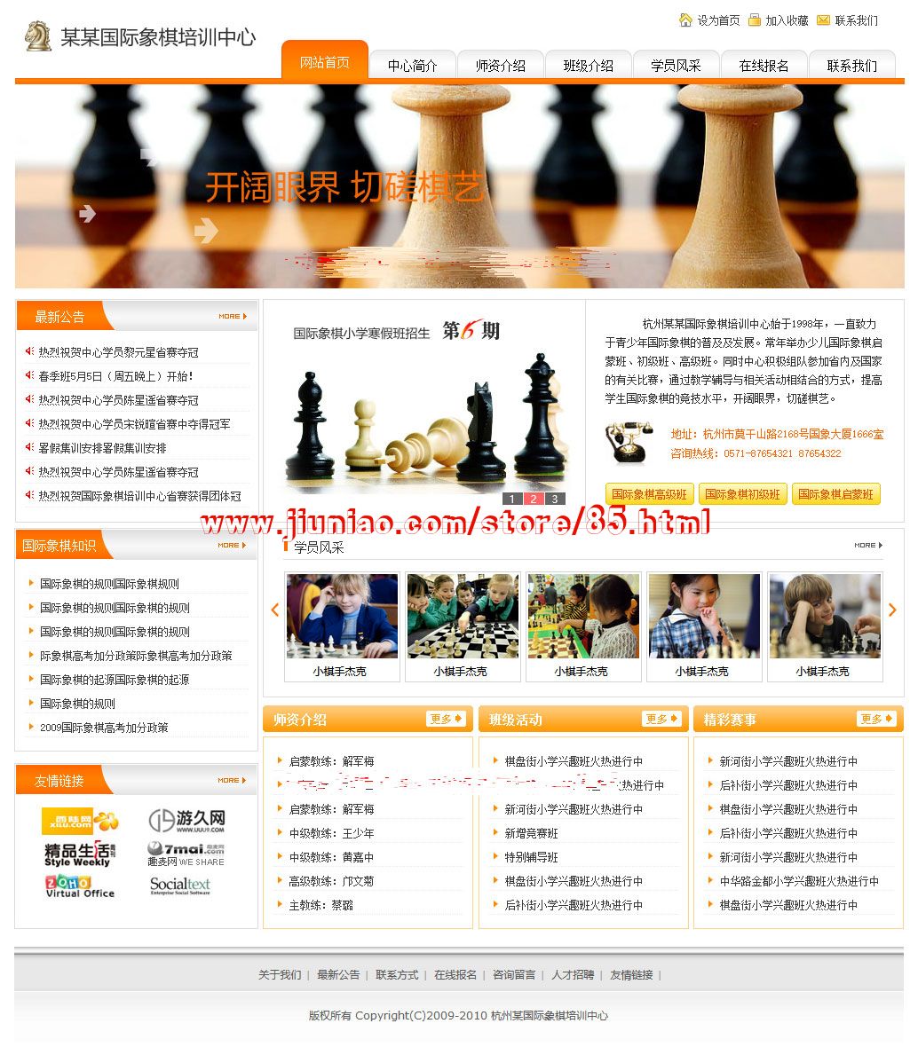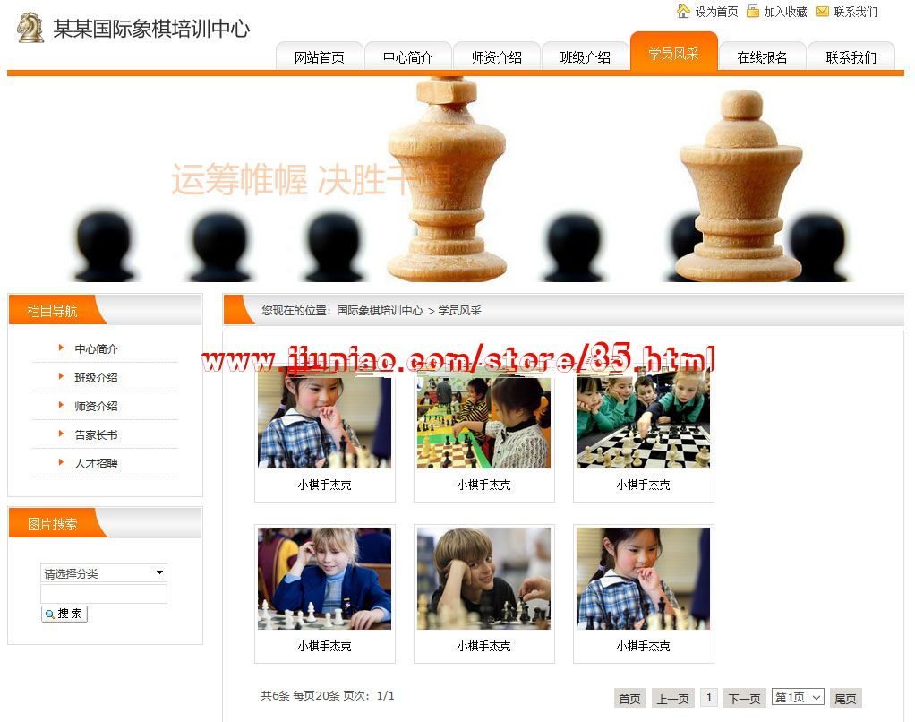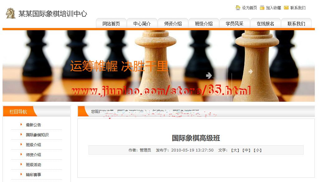 基于PHP开发的一款象棋文化教育培训企业网站模板。用户可以在现有成品网站的基础上加装其他功能模块;使用灵活的网页管理功能,可以自由添加和编辑网页;强大的鼠标拖曳排版功能,可以任意调整网站排版布局,是可以用来任何企业建站的通用模板。