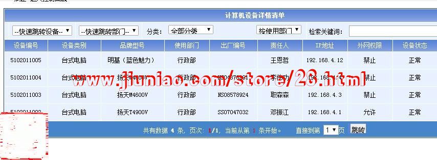 适用于各中小公司、学校和单位等内部的各类设备和资产管理,系统分为管理员、普通用户两级,其中普通用户只能查询,管理员有全部权限。
