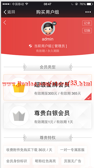 支持用户组价格设置,有效期设置,图标设置,支持用户组拥有特权介绍标签设置