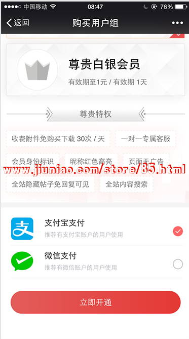 支持可购买的会员用户组设置,可以独立设置单个或多个用户组。