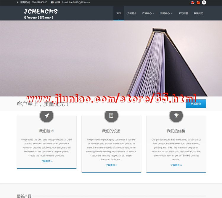 支持图片水印,客户下订单或留言有邮件通知,后台上传文档资料,在线留言等