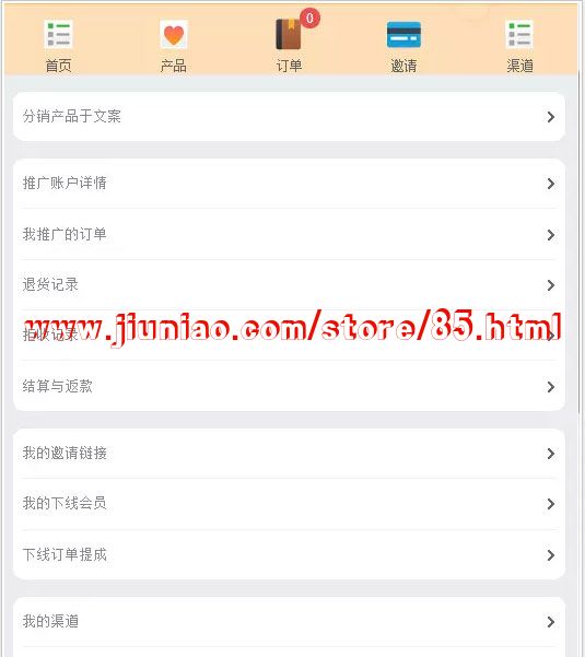 一款微信的公众号盈利平台,也可以是广告联盟源码 ,附带了三级分销。优质的产品、货到付款、超高佣金实现粉丝流量快速变现。
