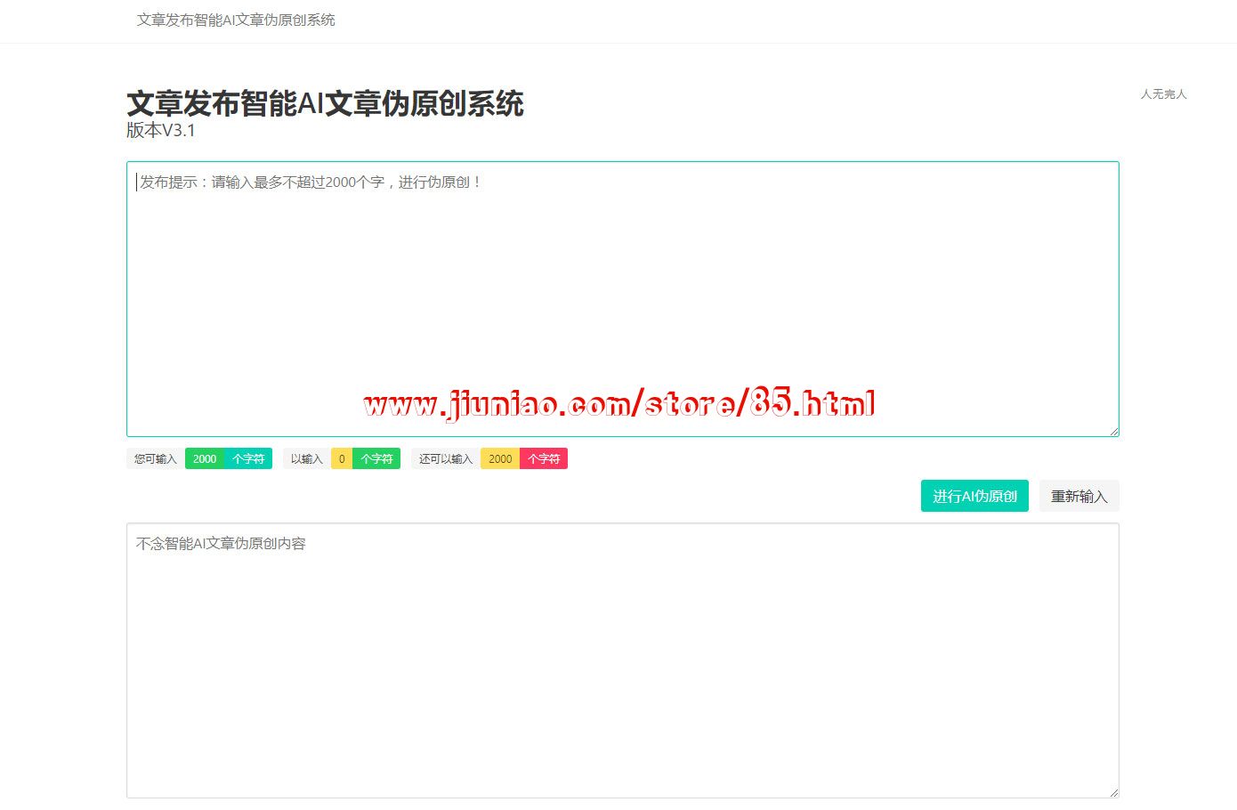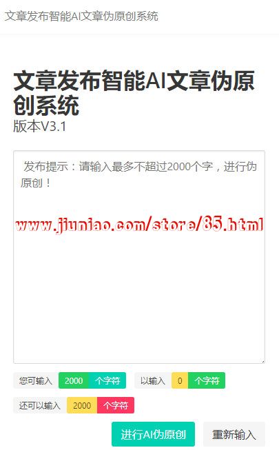 用户打开页面将想要进行伪原创的文章直接复制到文本框上,然后点击进行AI伪原创按钮下部文本框就会输出伪原创之后的文章。