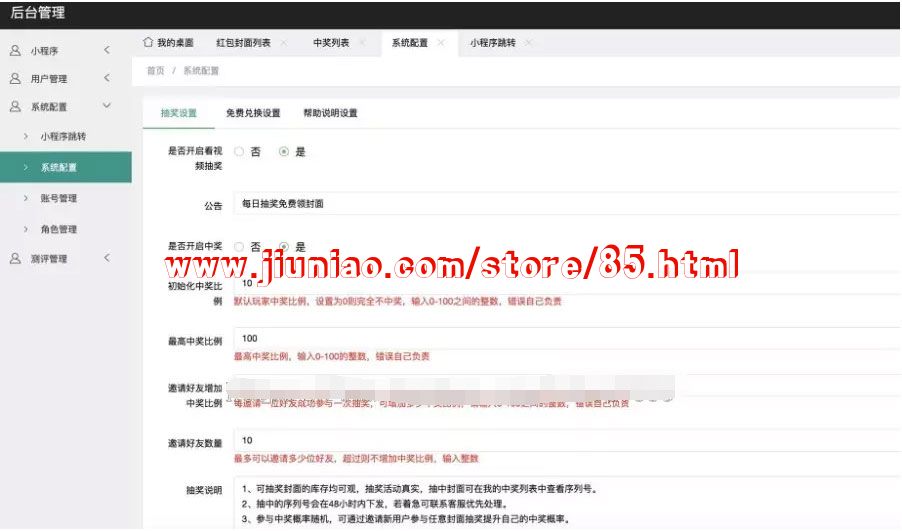 管理后台支持自定义上传红包封面图片,抽奖概率也可以自定义