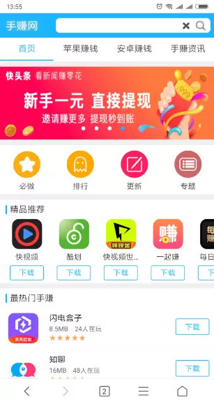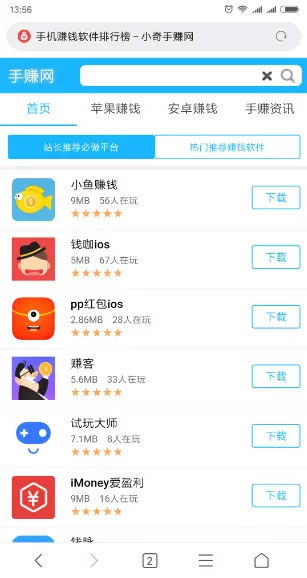 手赚网站上你可以发布很多的这种推广下线APP,1个用户在你网站上下载10APP并安装,你就至少有10元,这是保守的情况