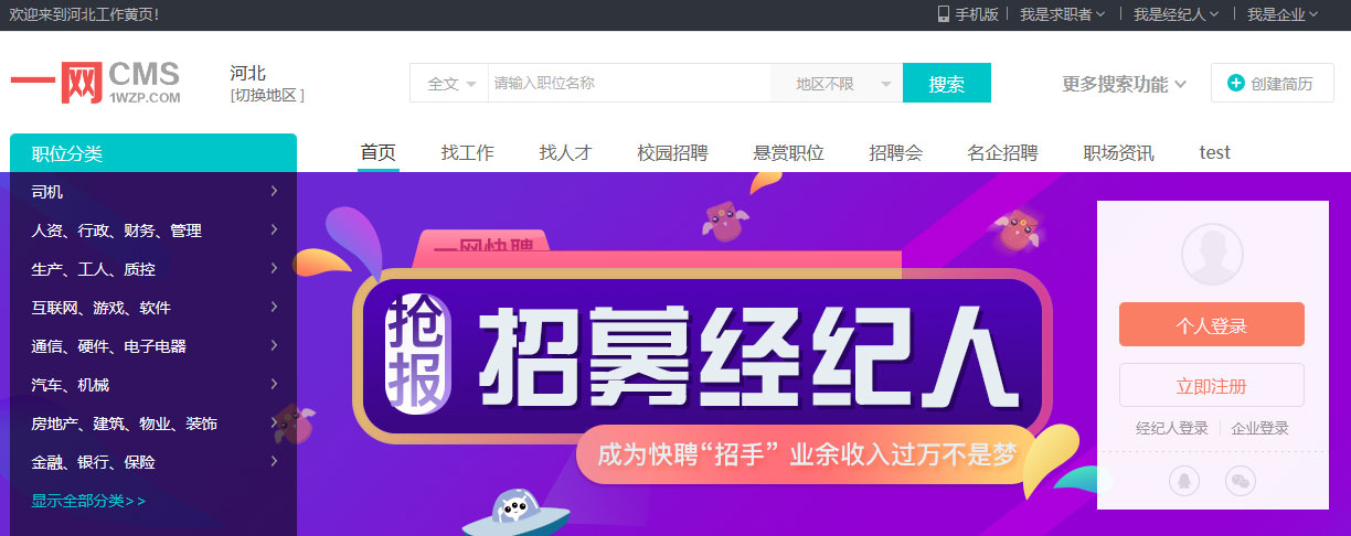 一网云cms人才招聘网站系统 v3.4.4 pc端+h5端+微信端
