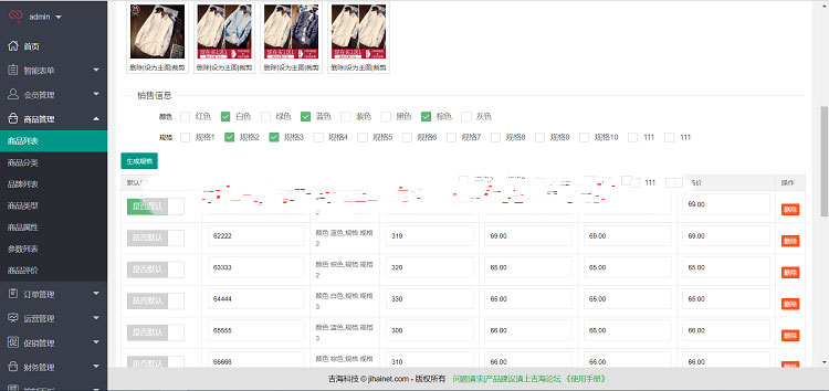多规格商品管理,品牌、分类管理、商品评价;商品销量的统计、财务收款统计、订单销量统计;表单列表、表单统计、表单提交管理、表单小程序码等
