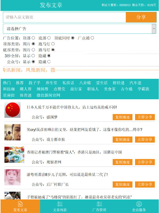 用户一键植入,不用粘贴网址,每篇文章会 分别统计展示量,让你知道下次应该分享什么。