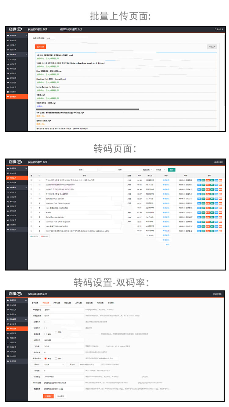 云转码系统 大文件上传 服务器端转码切片 流媒体 防盗链 分发软件 全自动入库 图标水印 双码率