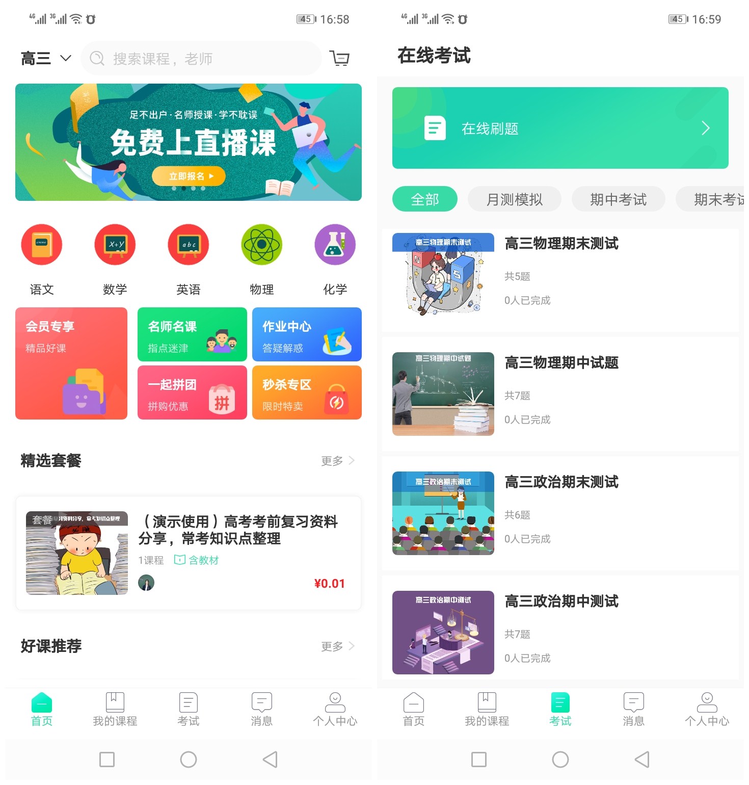 万岳网校系统源码支持一对一直播、大班直播、点播课程、音频课程、作业、考试等多种教学手段,让教育机构按需打造个性化的教学模式。