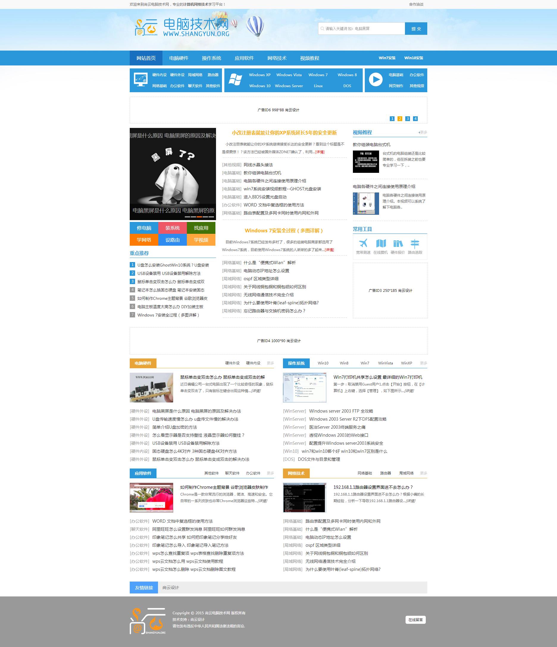 帝国cms蓝色简洁文章新闻模板电脑知识技术网站源码