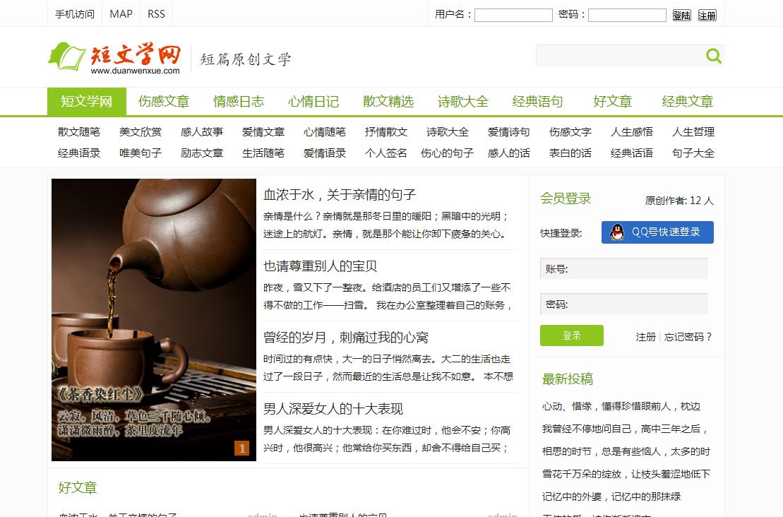 本程序为文学网网站程序内核为帝国cms,其中网站程序包括pc端网站程序和手机端网站程序和精美的会员系统。每个栏目都可以做个性化的SEO,可以设置各个热门关键词。网站已经做好广告位,站长建好站之后可以放上广告代码赚钱了。