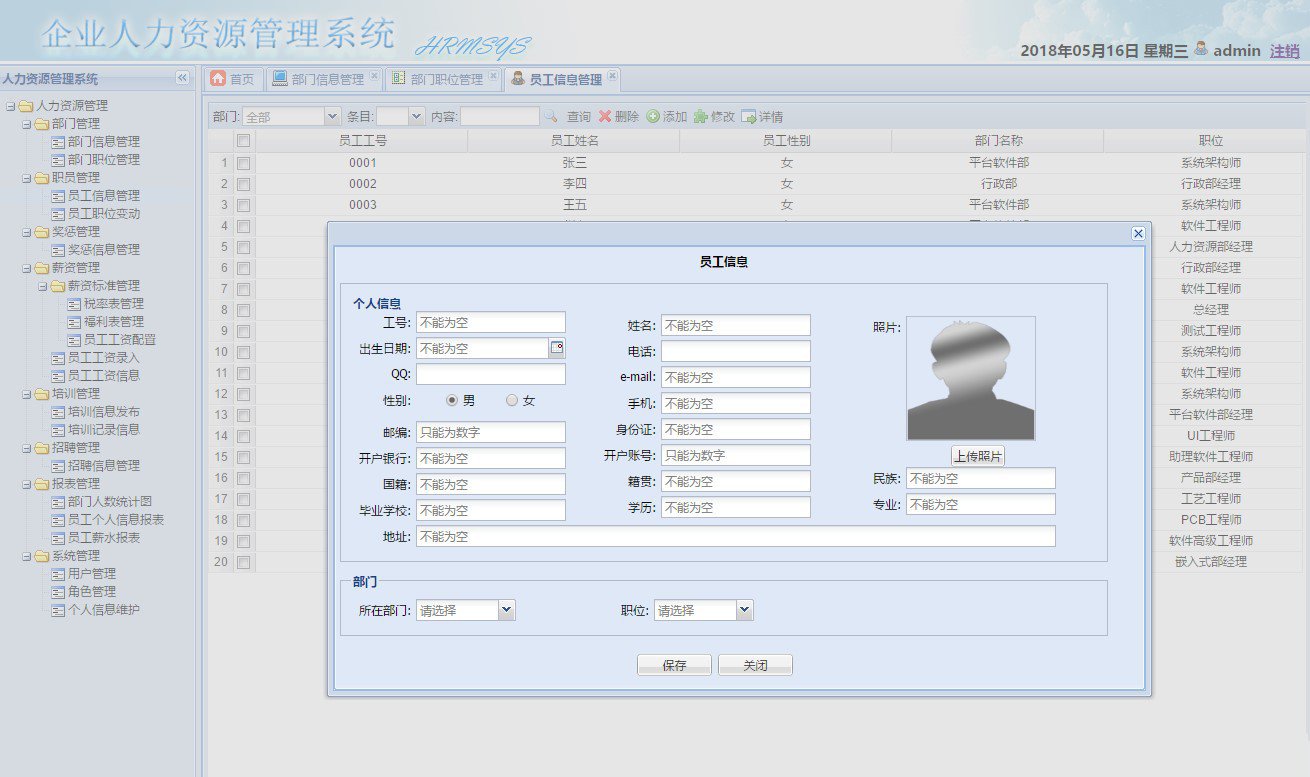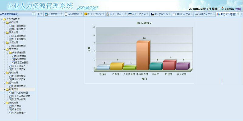 由ssh+mysql实现的Java web企业人事人力资源管理系统,其中struts版本是struts2,本系统功能非常完善,已经达到了可以商用的地步,基本全部实现了整个人力资源管理的所有功能,包括员工档案信息、部门信息、职位变动、工资信息、福利计算、培训信息管理等等,还可以把统计信息导出成pdf、excel等格式的文件,可选择导出某个员工的也可全部导出,非常方便