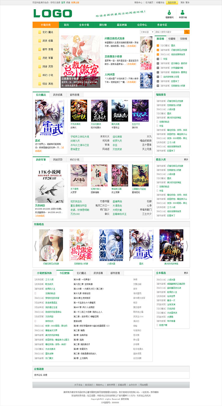 杰奇1.7小说网站模板,电脑版绿色为主,手机版是蓝色