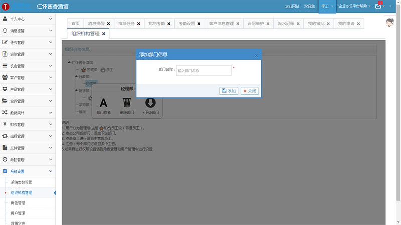 账号分配:管理员用户可以自由设置企业组织架构,管理员用户可以设置多个,管理员用户可以自由添加用户账号,用户级别可以自定义,可以管理员工基本信息,每个用户有独立的用户名和密码