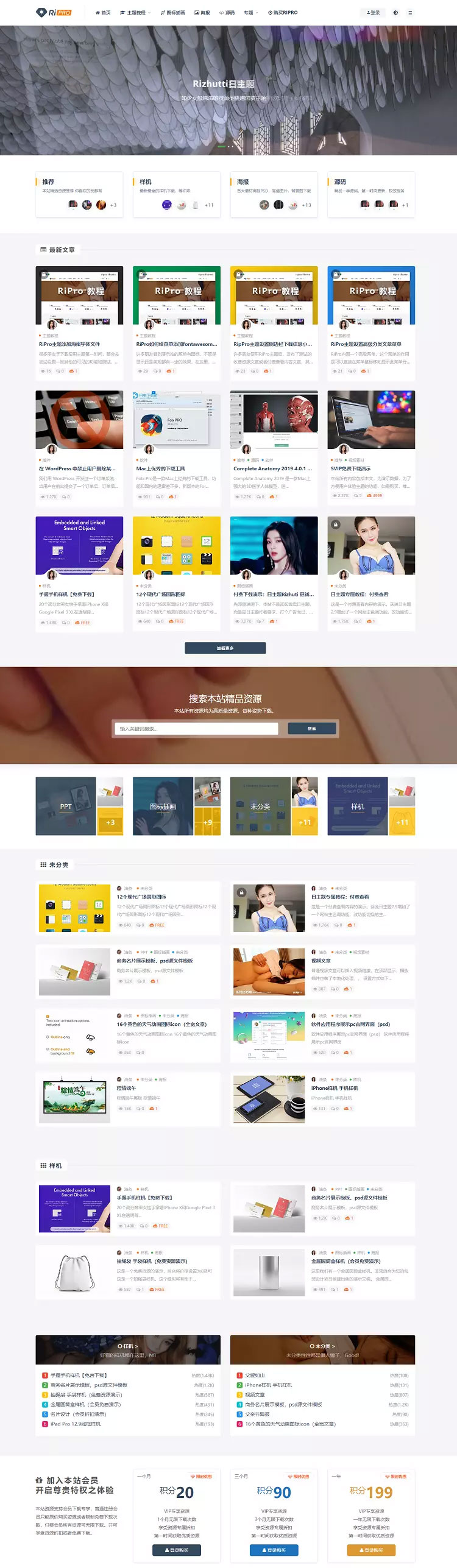 RiPro日主题是一个优秀的主题,首页拖拽布局,高级筛选,自带会员生态系统,超全支付接口,你喜欢的样子我都有!RiPro主题,更强大的全资源/素材类主题,无需插件,集成强大的支付,后台管理,用户体验舒服。支持卡密,充值,积分,会员,高级筛选,推广佣金,作者佣金,前台创建文章,统计,自定义币种,自定义会员标识,全站功能实现AJAX,图片全站真正懒加载,支持SEO,注册邮件验证码等!