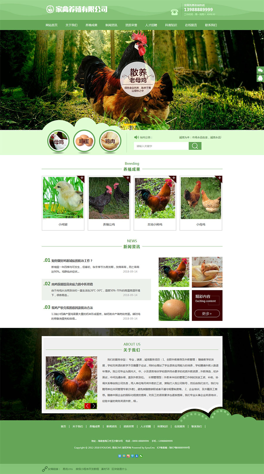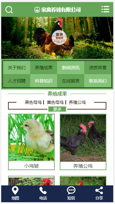 PHP绿色精美母鸡家禽养殖公司网站源码 带手机版
