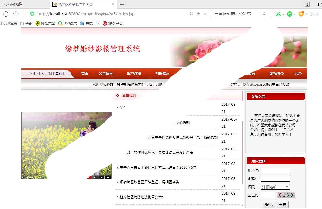 java红色风格婚纱影楼网站源码 前台+后台管理系统