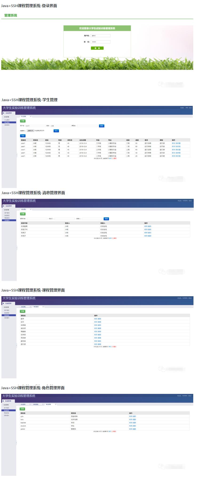 项目基于ssh框架实现另一个学生实验实习训练课程管理系统, 实现了如下功能