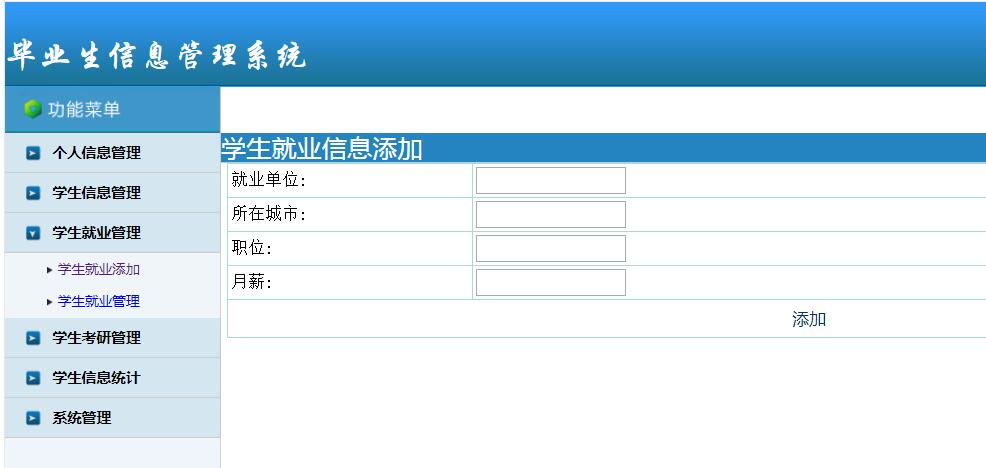 ③就业信息管理:对本学院所有就业学生的信息进行添加,就业信息包括了就业的单位、职位等。