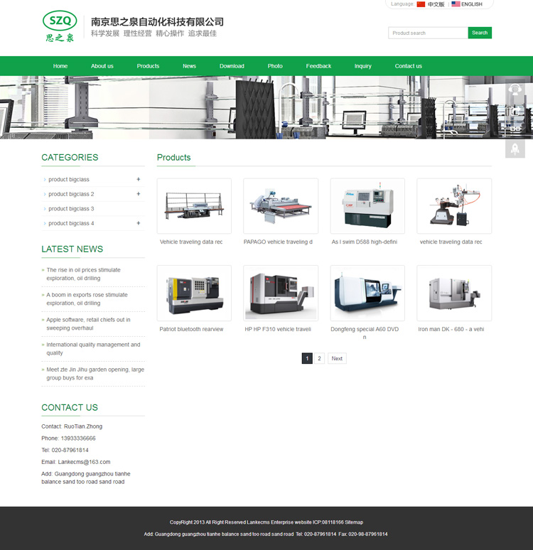 3.产品模块:产品支持二级分类,并可对产品直接下订单询价,且支持邮件通知,更符合企业营销。