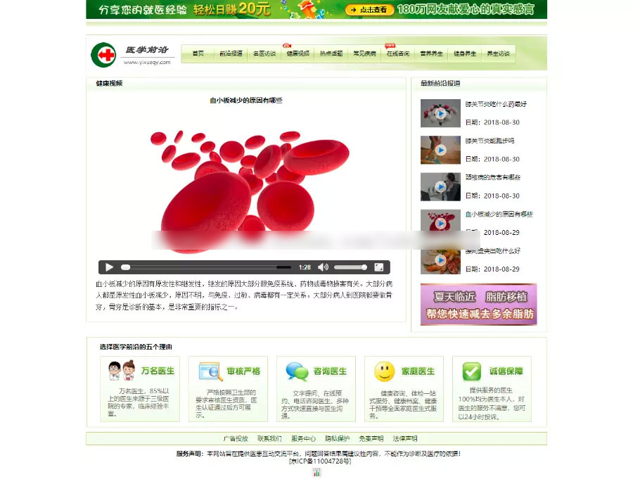 医疗健康的门户网站+后台系统,可以直接使用VS2012打开。包含所有源代码和数据库,可以直接部署到IIS中使用,本源码可更改成任意类型的门户或企业网站,只要会HTML即可更改成任何样式的网站。