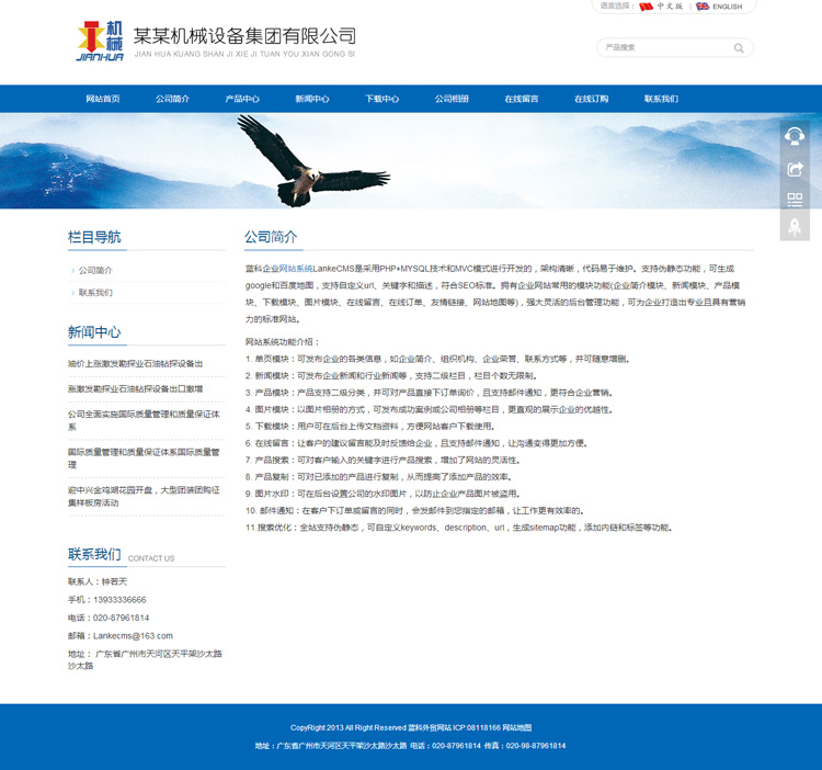 1.单页模块:可发布企业的各类信息,如企业简介、组织机构、企业荣誉、联系方式等,并可随意增删。