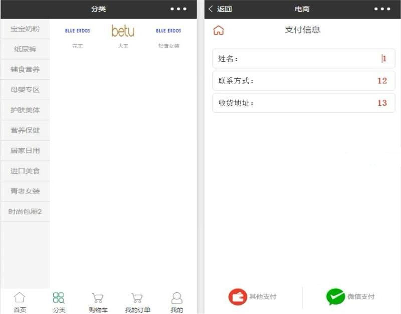 (订单信息:选中的商品的信息、用户的信息(用户姓名、联系方式、收获地址)、总金额。)